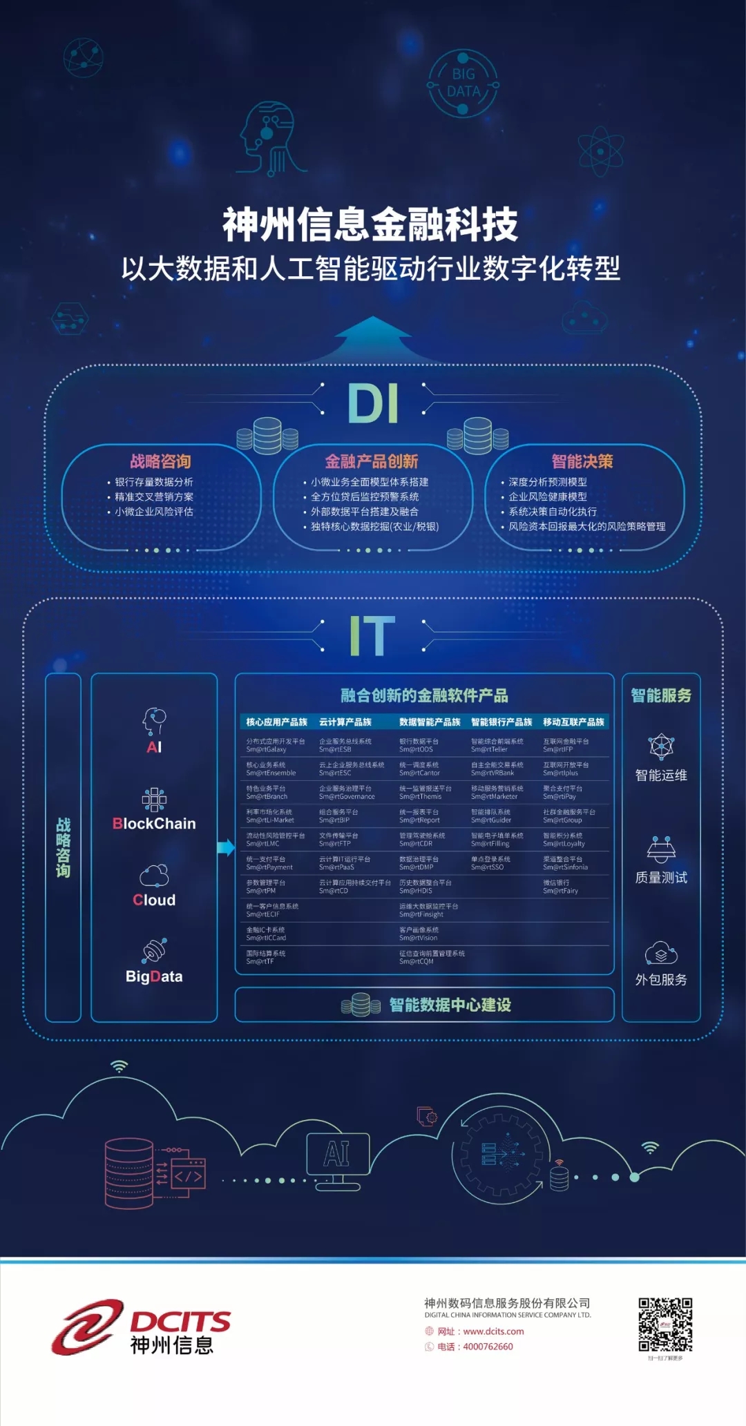 同时,在自主可控的原则下,神州信息以大数据、人工智能、量子通信等新技术应用驱动金融行业数字化转型,推进智慧金融。在大数据应用跨界融合和产业互联的趋势下,通过融合IT和DI(数据驱动决策优化),为金融机构提供金融产品创新、智能决策、风险管控、战略咨询等服务,以数据驱动决策优化,推动业务发展。人工智能应用方面,进行金融软件产品智能迭代升级;推进IT运维的平台化、智能化和自主可控;积极探索人工智能与新金融场景的结合,研发落地新的行业应用。推进无条件安全的量子保密通信技术在金融行业的应用突破,实现数据加密传输。目前,已携手国盾量子助力中国人民银行、上海银行、中国银行、工商银行、光大银行等近20家金融机构实现量子技术与业务系统的结合,推进金融行业自主可控。