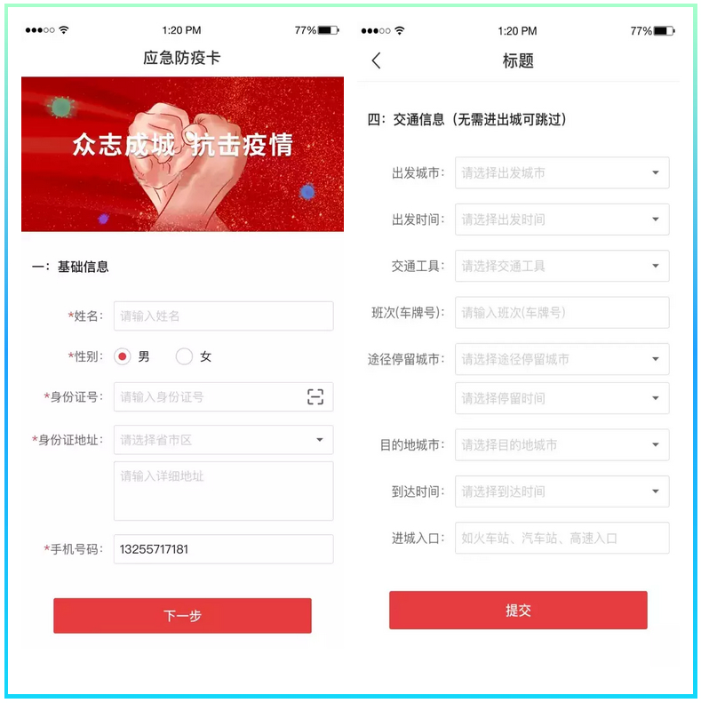 ③极大的提高工作人员效率。市民可在出门前、或返城前在手机端填写“神州健康(防疫)卡”,填写完毕后,会自动生成个人专属的动态二维码,市民在外出、或是进城时需要健康检测时,只需出具二维码,工作人员扫描后就可以获悉该市民的个人信息和出行轨迹,以及之前的体温监测时间、地点,再由工作人员补充最新的体温数据,从而形成市民个人的电子防疫数据。极大的提高了各安检道口的通行速度,避免人群拥挤。