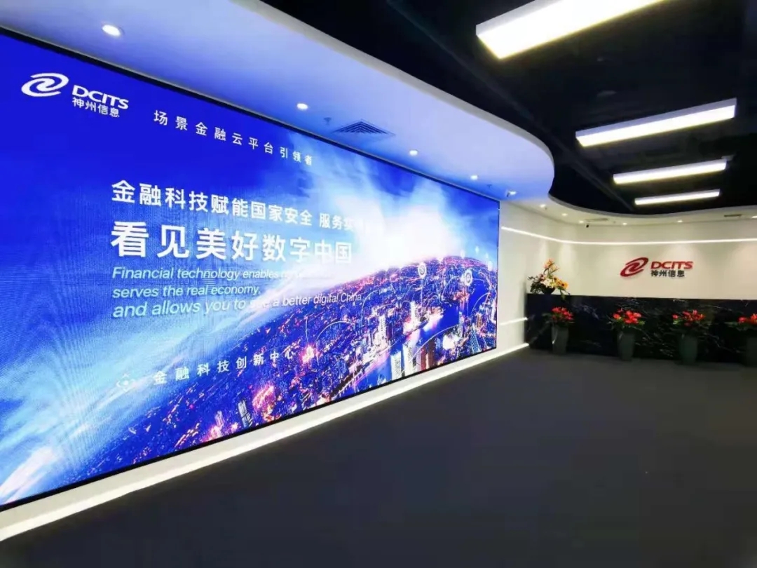 神州信息金融科技创新中心坐落于国家级金融科技示范区核心区的起步楼宇——新动力金融科技中心,拥有业内领先的360°环幕数字沉浸体验厅。创新中心展示了神州信息从IT到DT的发展历程,以及目前围绕金融信创,场景金融,数据智能、云原生数字化安全底座等重点业务的布局、发展与前瞻,呈现出公司聚焦金融科技,共建美好数字中国的核心竞争力。环形屏幕演绎的科技赋能故事为参观者带来了身临其境的视觉氛围体验。