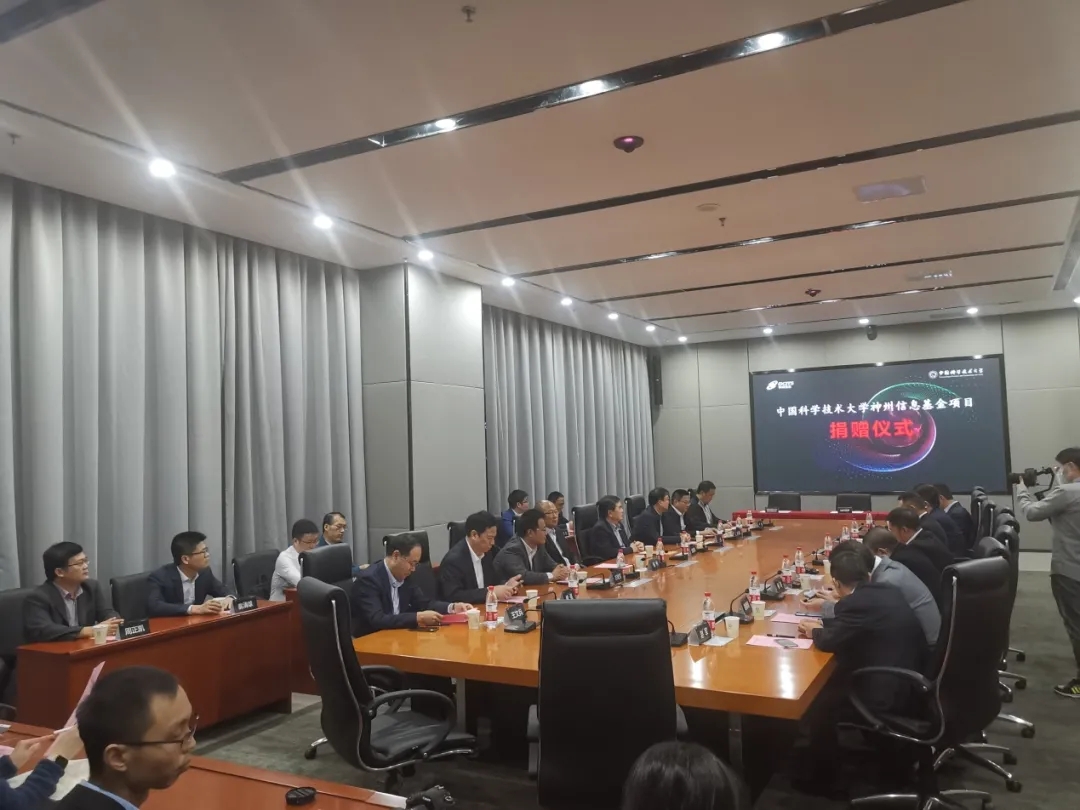 10月13日下午,中国科大“神州信息基金项目”捐赠签约仪式在东区物质科研楼一楼会议室举行,神州信息董事长郭为(85硕校友),中国科大校长包信和院士,中国科大党委副书记傅尧,中国科大对外联络与基金事务处处长、教育基金会秘书长周宇,合肥滨湖科学城管委会副主任杨伟,中国科大管理学院执行院长、国金院院长余玉刚,中国科大管理学院党委书记古继宝等参加并见证仪式;中国科大管理学院党委副书记芮锋,中国科大管理学院副院长吴杰、张伟平、刘林冬,国金院副院长翁清雄、周正凯等出席仪式。仪式由神州信息董事会秘书、财务总监刘伟刚主持。