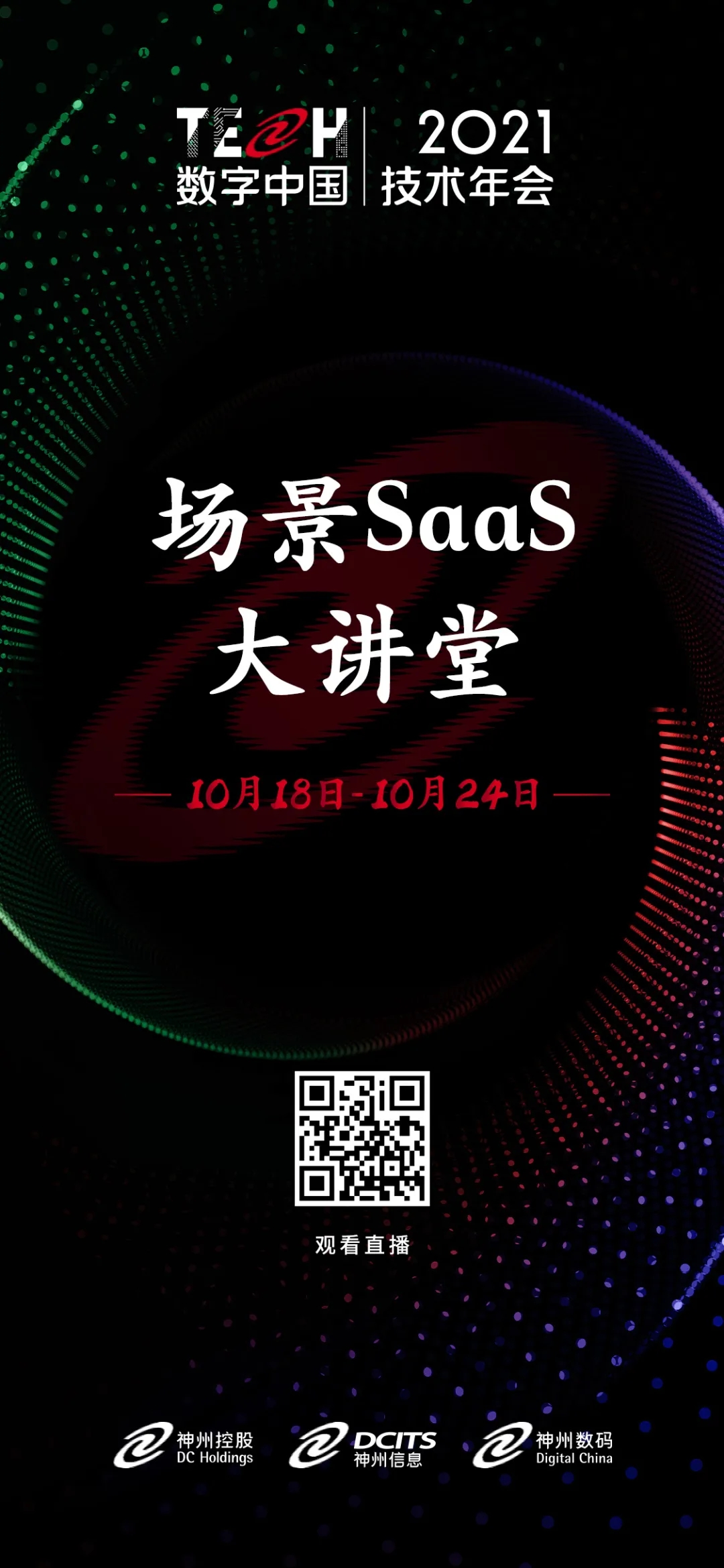 TECH数字中国2021技术年会 | 场景SaaS大讲堂,今晚7点准时开启