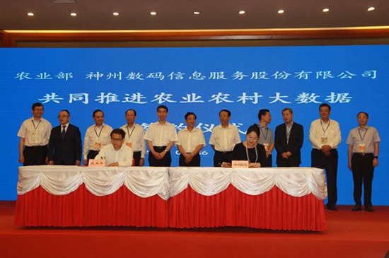 仪式上,神州信息与农业部签署了《共同推进农业农村大数据合作协议》。在农业部的指导下,该协议将充分发挥神州信息在农业大数据领域的综合优势,并由双方共同推动大数据与农业不断融合,进而帮助农业现代化建设和农民增收致富。