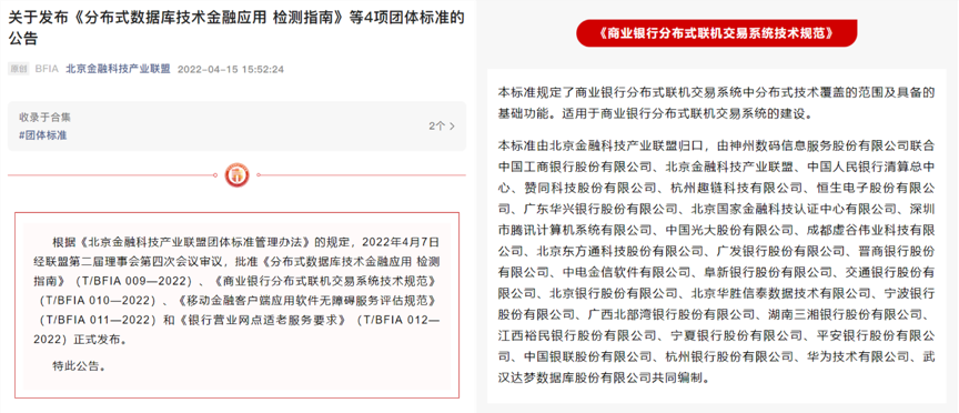 由神州信息联合中国工商银行主导,多家股份制、城商行等各类金融机构与金融科技产业伙伴共同编制的这一标准,立项后引起了金融行业、金融科技产业的高度关注,这是神州信息与国有大行在金融领域联合牵头编制的首个金融科技标准。