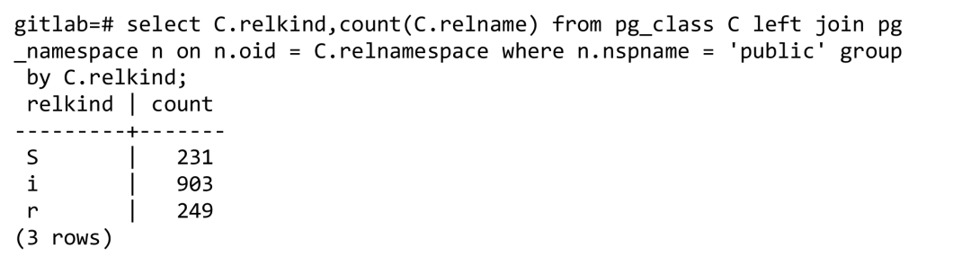 用标准PostgreSQL部署的GitLab包含的数据库schema为: