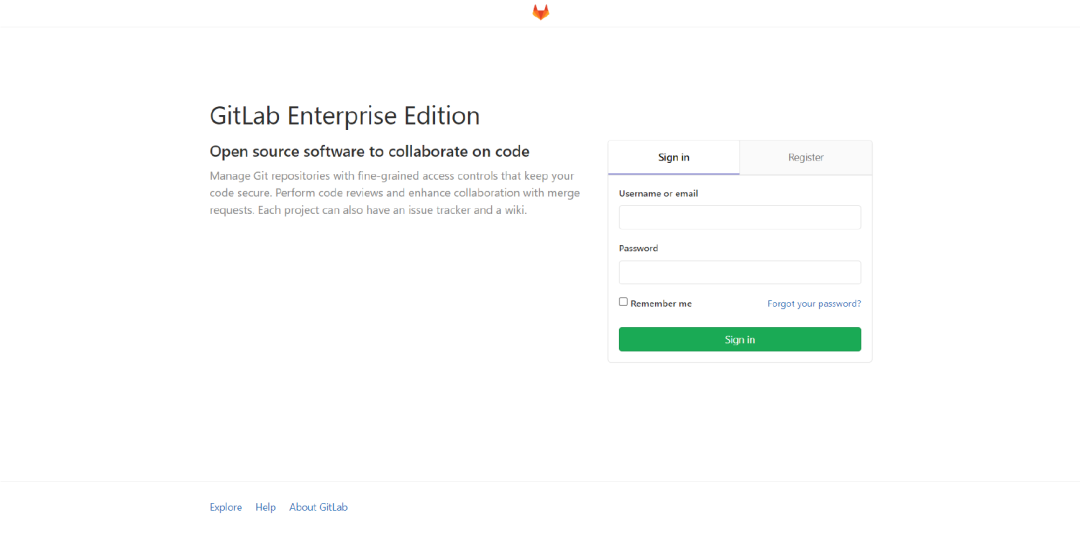 填写用户注册表单提交后新用户注册成功,自动跳转到GitLab主页面: