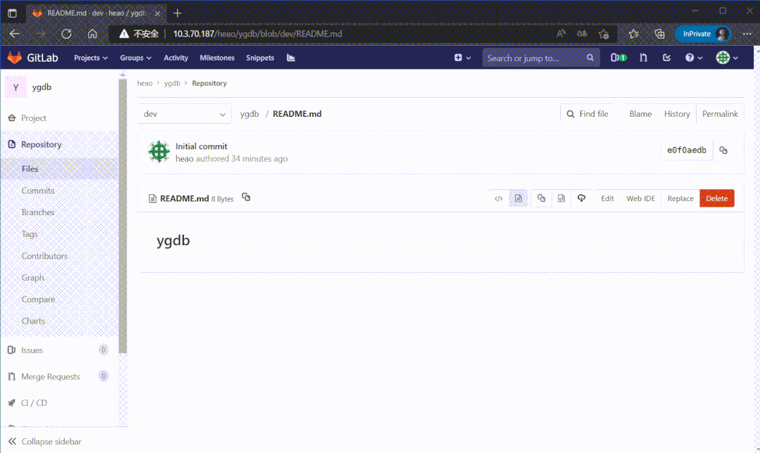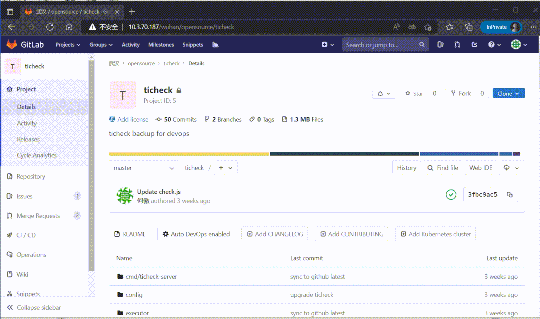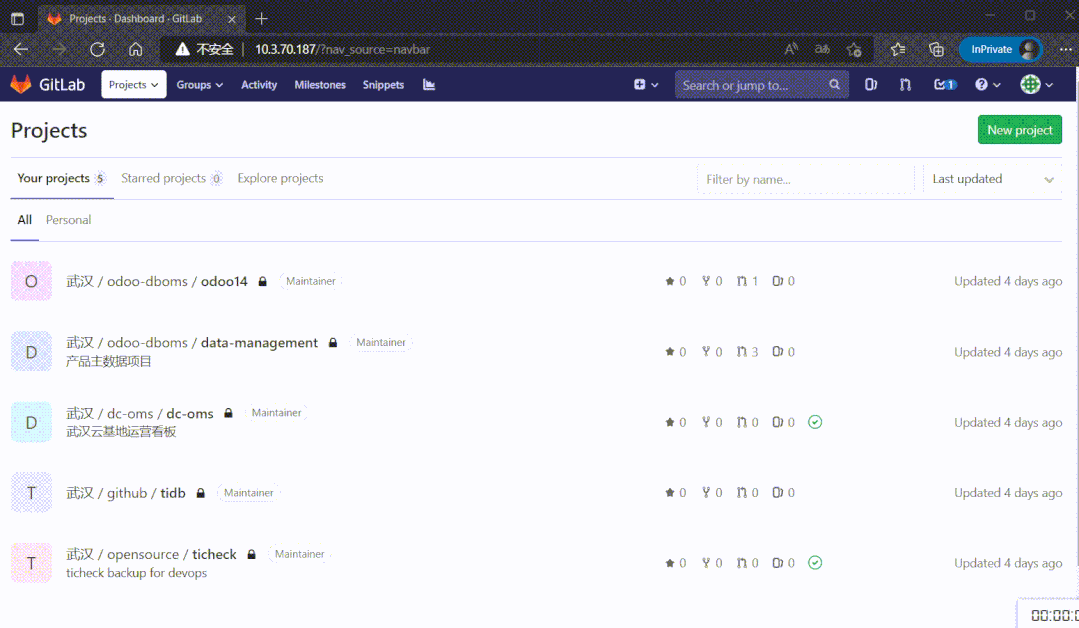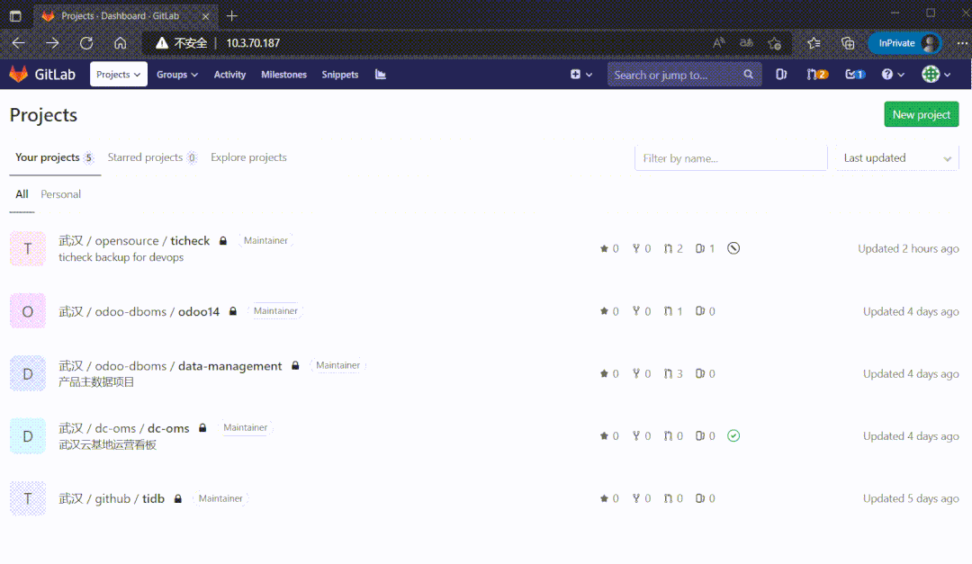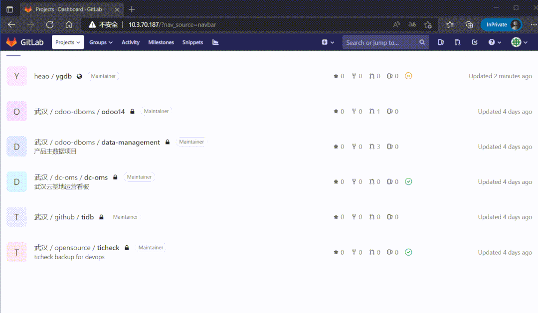除了差10个左右索引,其他都正常。这时候把GitLab数据库指向到这个新库,启动程序看能否打开页面: