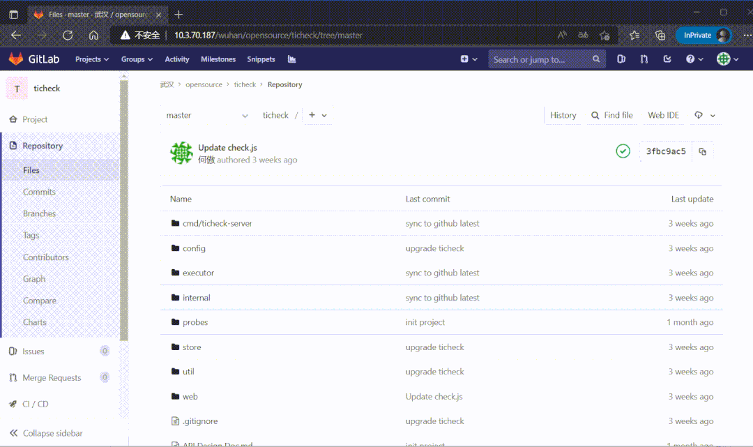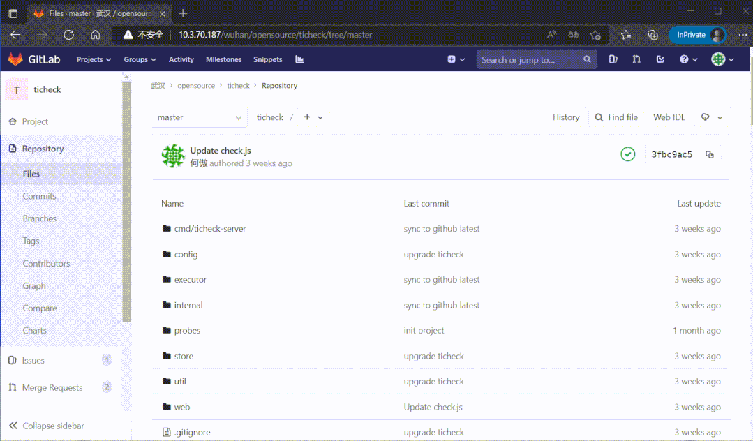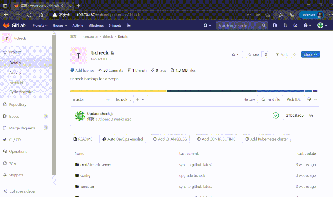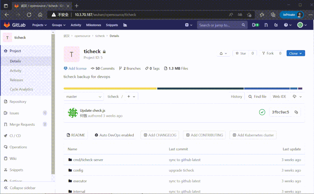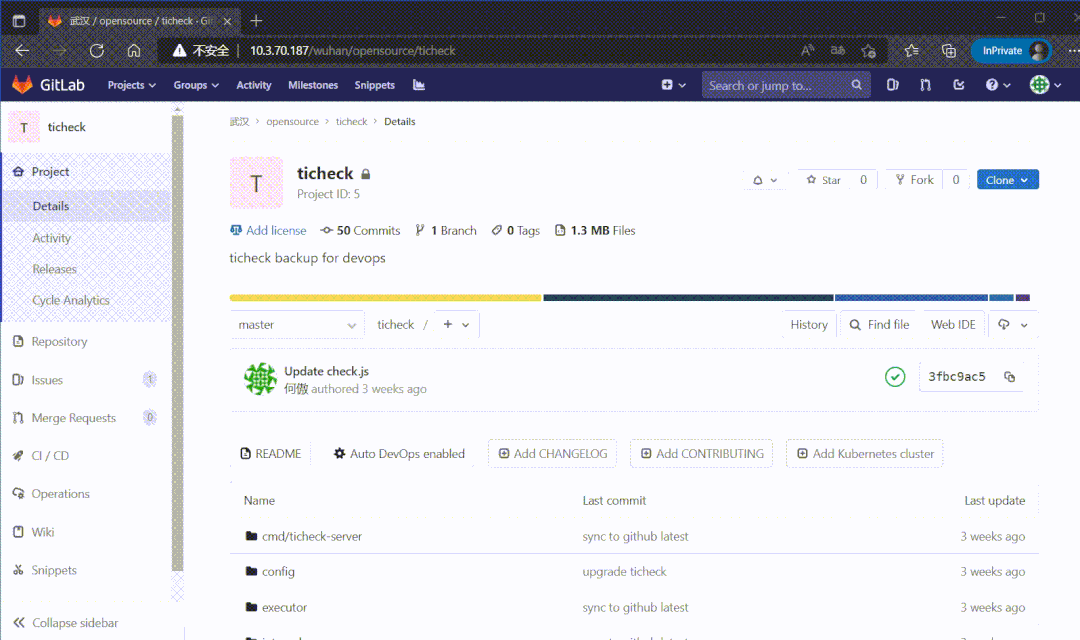 除了差10个左右索引,其他都正常。这时候把GitLab数据库指向到这个新库,启动程序看能否打开页面: