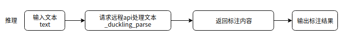 _duckling_parse():解析输入文本并请求 rest api 进行数据处理,返回标注结果。