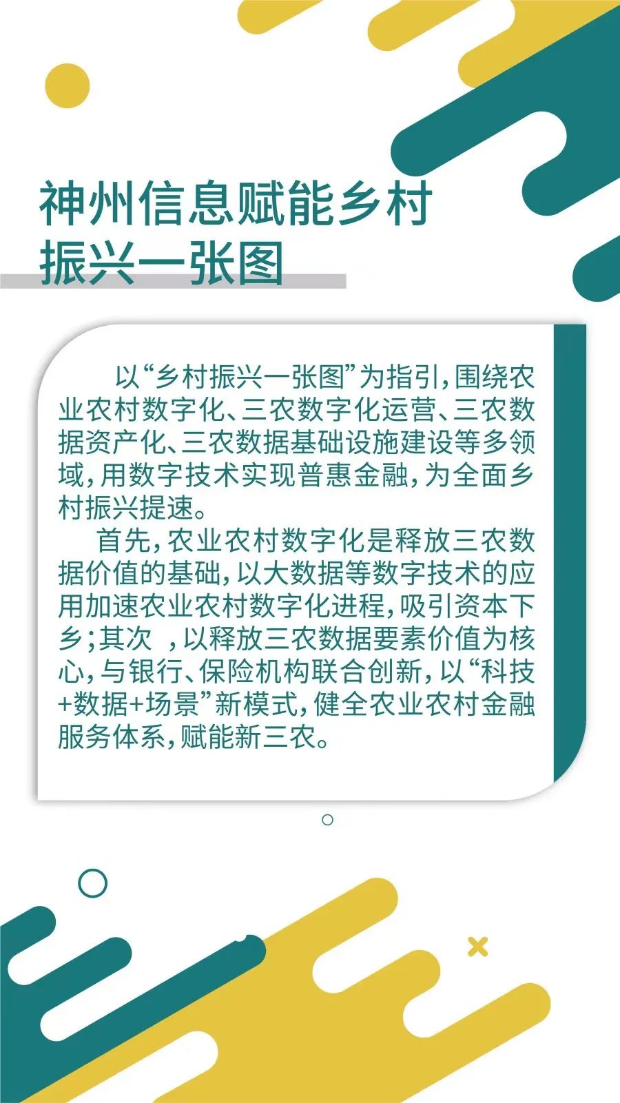 围绕科技赋能全面振兴乡村,神州信息认为,一方面,农业农村数字化是释放三农数据价值的基础,以大数据等数字技术的应用加速农业农村数字化进程,可使三农资产价值可衡量,吸引资本下乡;另一方面,以释放三农数据要素价值为核心,与银行、保险机构联合创新,以“科技+数据+场景”新模式,健全农业农村金融服务体系,打通金融涉农服务的堵点和难点,让金融精准滴灌三农,进一步加速农业农村数字化转型,推动数字经济发展,赋能新三农。