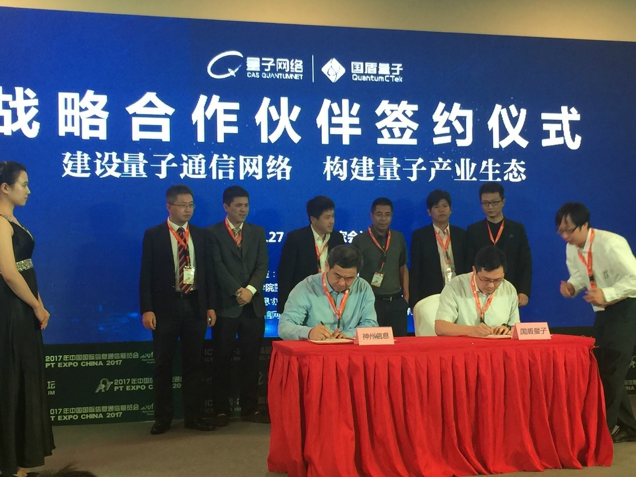 9月27日,中国量子通信网络与应用高峰论坛暨“Q-NET”新品发布会召开。产品发布会上,科大国盾量子技术股份有限公司(下称“国盾量子”)和jcjc5500公海信息服务股份有限公司(下称“神州信息”)签订战略合作协议,共同推出“神码国盾”联合品牌,进一步完善量子通信产品化发展和产业化生态。