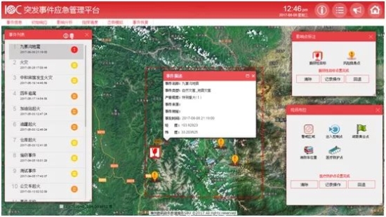 震后,突发事件应急管理平台基于整合的各种信息资源,包括人口、土地利用、附近救援力量、救援资源和避难场所的空间分布、以及地质、地形、气象等基础要素信息,通过实时调取景区游客数量和灾区监控视频数据,采用应急决策模型,掌握地震不同影响范围内的人口热力和医院等救援资源承载情况,模拟形成人口疏散和救援方案。通过分析灾区堰塞湖形成的可能性和地质气象环境变化可能引起次生灾害的区域,动态获取救援现场情况和社会网络舆情,及时发布权威信息,为救援力量的合理分配和科学救灾提供依据,增强城市大型灾害应急处置能力。