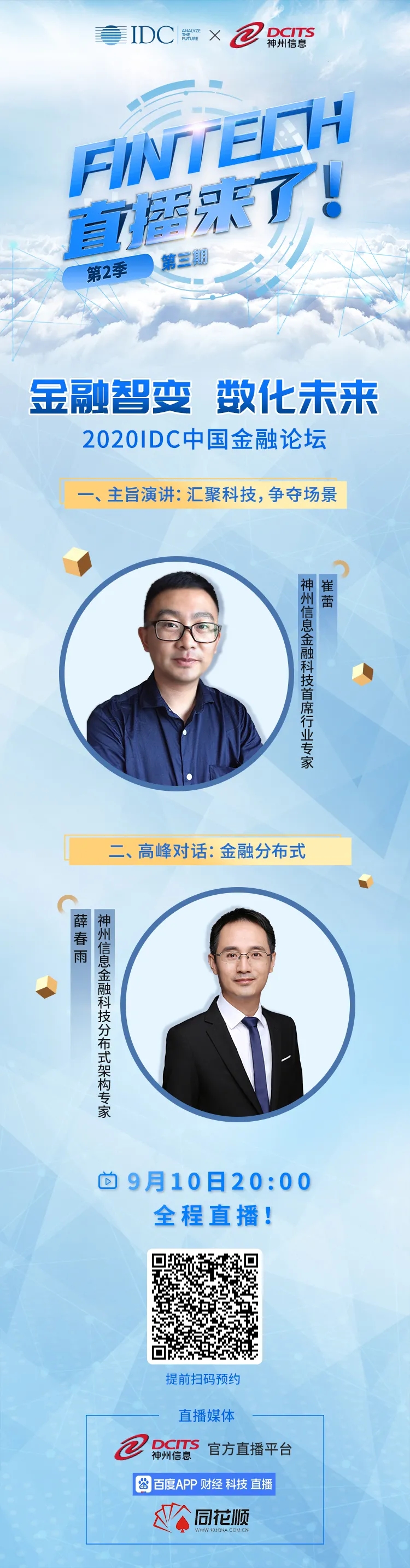 直播预告丨【FinTech直播来了 第2季】第三期:金融智变,数化未来 2020IDC中国金融论坛