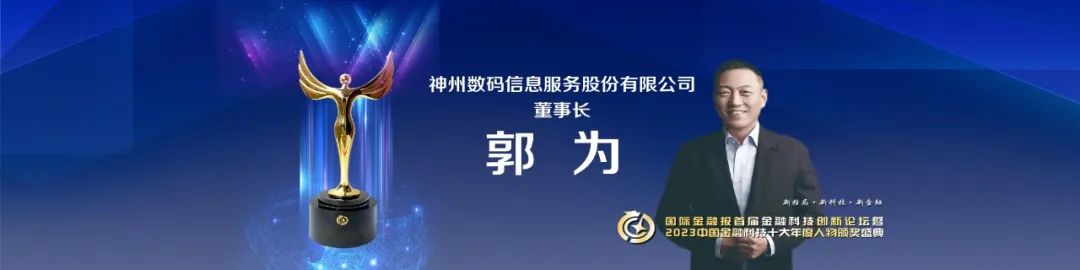 大会现场公布“2023中国金融科技十大年度人物”,神州信息董事长郭为与北京大学国家发展研究院副院长、北大数字金融研究中心主任黄益平;北京金融控股集团有限公司党委书记、董事长范文仲;上海市人民政府参事、中国科学技术发展战略研究院高级顾问张光平等人共同入选。